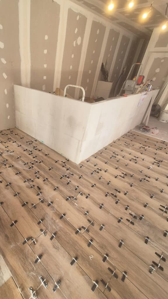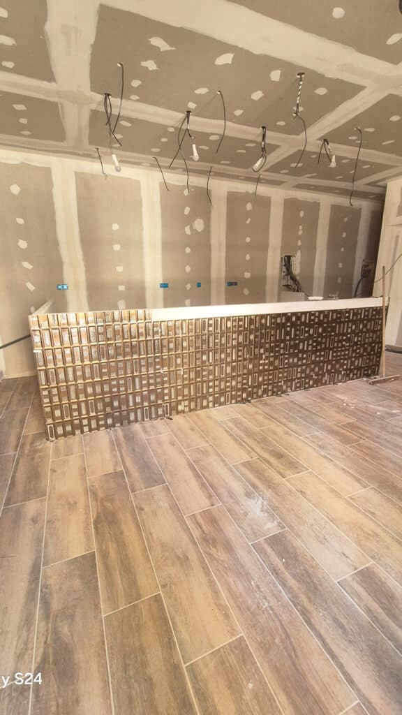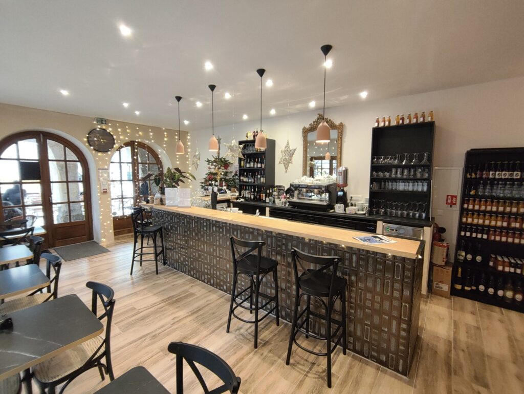 Les travaux ont inclus la pose de placo, la rénovation de l’électricité et de la plomberie, la création d’un comptoir sur-mesure, ainsi que la pose de carrelage. Cette rénovation complète a permis de repenser l’agencement du bar-restaurant afin d’optimiser les volumes et de créer une ambiance conviviale et actuelle.